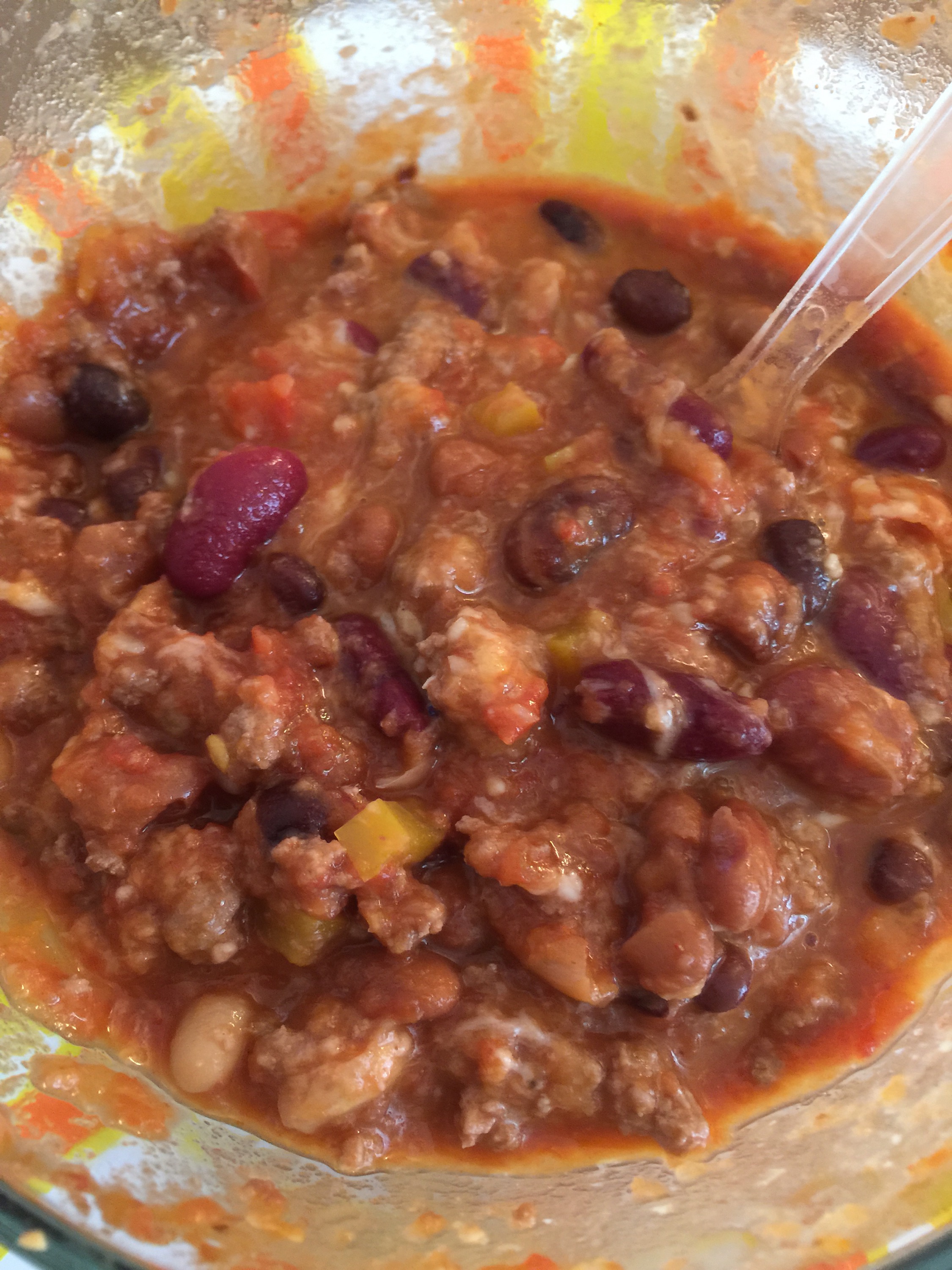 Back to the point. This chili. Listen, we have been chili eaters for a long time. A bowl of chili, some cheese, and crackers… comforting and perfect. Our previously consumed chili recipe was delish, but a lot of junk in it too. So, when I saw in our Fixate Cookbook that there was a 21 Day Fix approved chili recipe, I was beyond excited. I set out on a Sunday afternoon to make as much of is as I could fit in a pot. Sunday, because chili needs time to simmer and meld all those flavors together. And Sunday because daddy is home to keep the little man occupied while I’m in the kitchen. 🙂